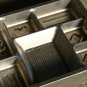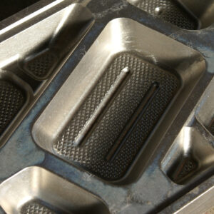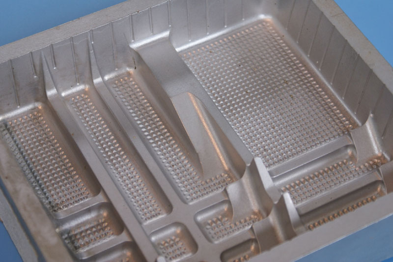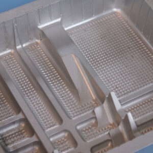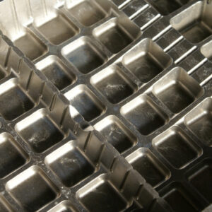 NCフライス等のマシンで削り出した真空成型金型を使って成型された食品トレイは、保管の時に重ねると貼り付きやすくなってしまいがちです。
