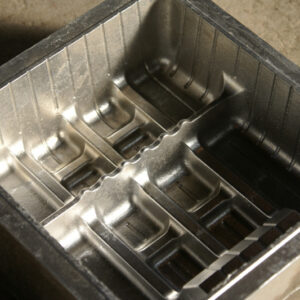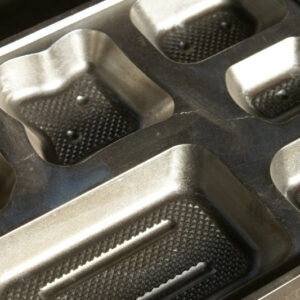 しかし、当社の鋳物技術ブライトキャスト技術で作った真空成型金型を使って成型された食品トレイは、保管の時に重ねておいても貼り付きを防ぐ事が出来て、作業効率を落としてしまうこともありません。